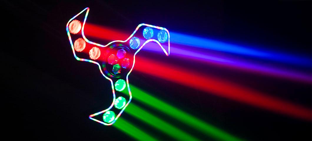If you want instant “concert flavor,” this is it. SPIN-FURY blends high-speed rotation, powerful strobe output, and crisp laser lines for seriously explosive moments.