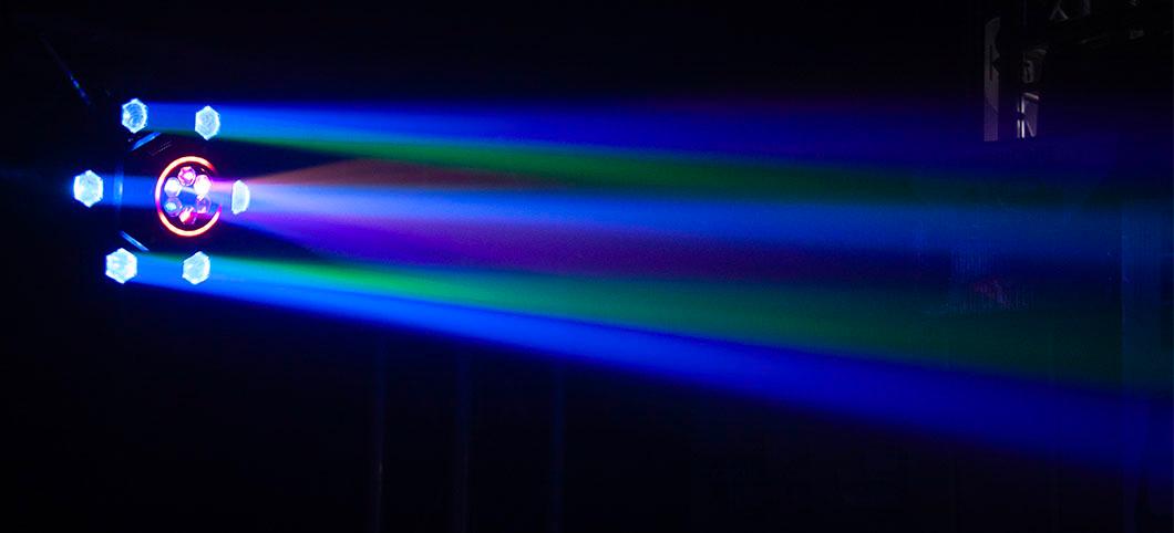 This is the “party starter” in the lineup. The BEAM-BOX is a compact housing packed with multi-effects that fill a room with movement instantly.