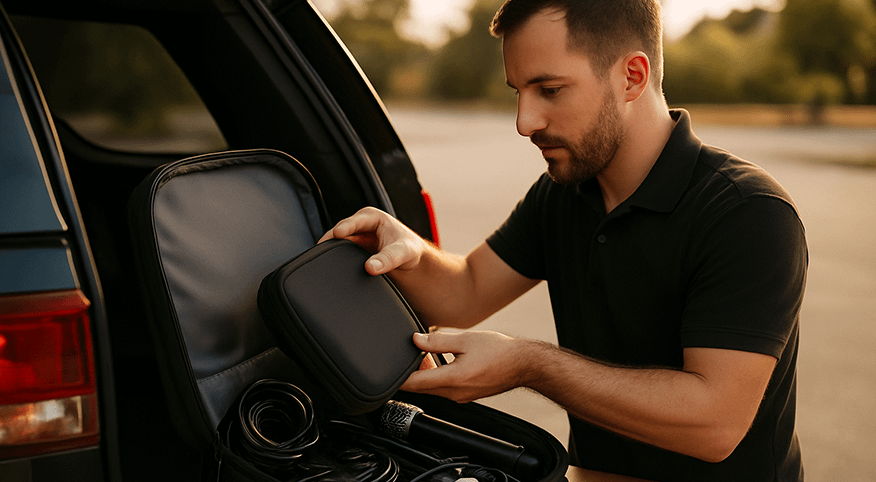 Pro Tip: Plug your main rig into a UPS and your backup into a battery-powered speaker. That way, if the venue power cuts out, your sound doesn’t.