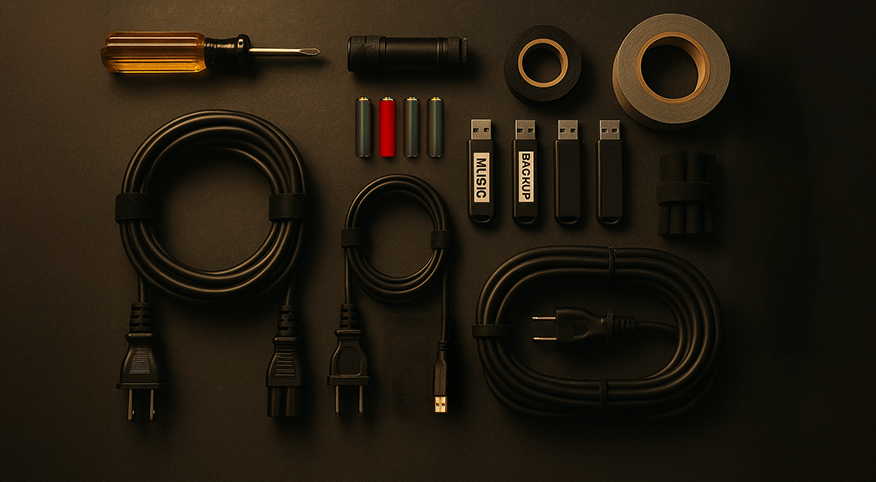- Keep a small toolkit: screwdriver, flashlight, fuses, tape.