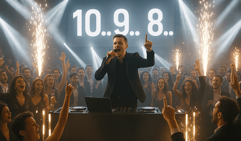 Mic example: “Ladies and gentlemen, this is it! When we hit midnight, I need EVERY SINGLE PERSON jumping into 2026 with us!”