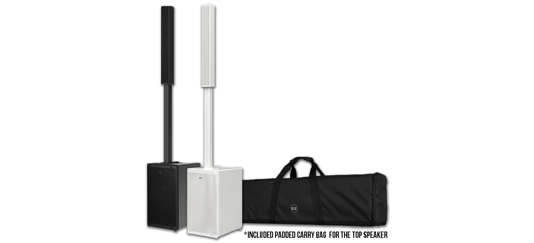- Padded carry bag included for the top speaker