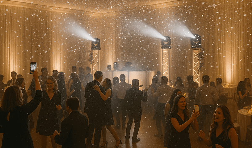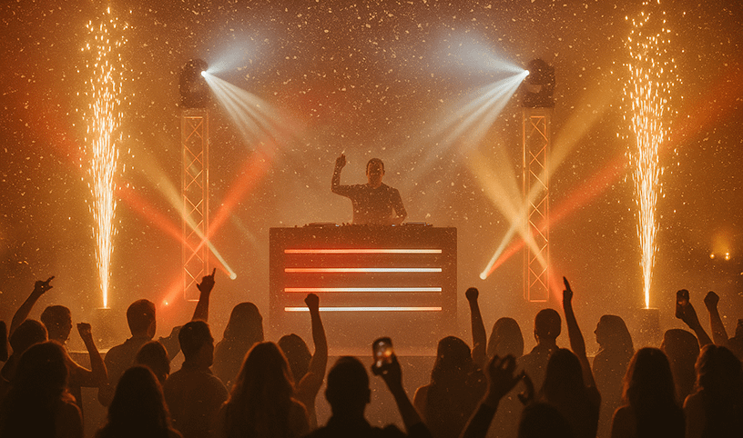 Snow drifting through the air. Cold sparks shooting up right as the drop hits. Fog wrapping the dance floor in light beams. Those moments don’t just entertain, they stop people in their tracks, phones out, eyes wide.